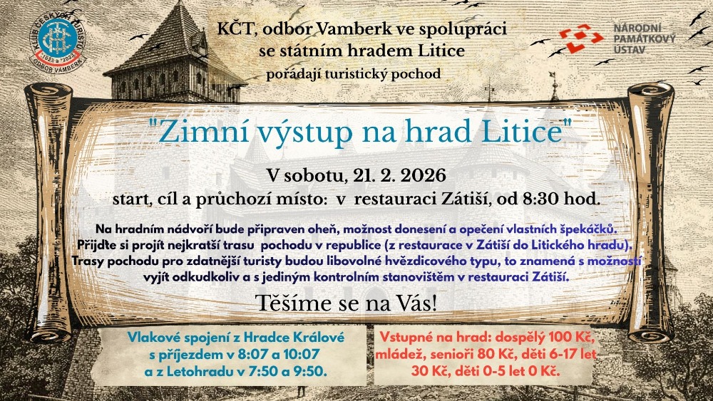 Mimořádně bude otevřený i hrad Litice a to pouze v sobotu 21. února, kdy zde proběhne „Zimní výstup na hrad“.